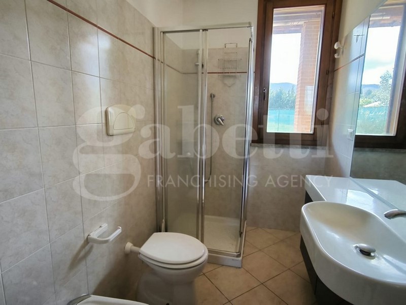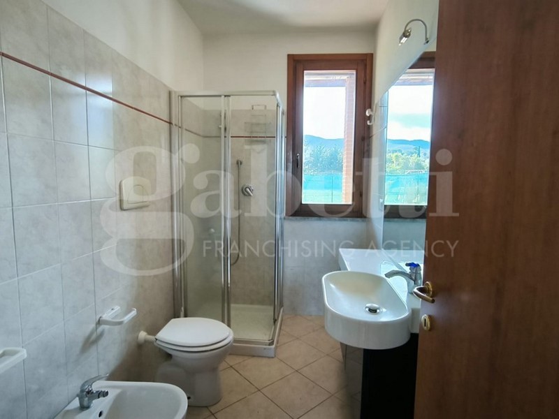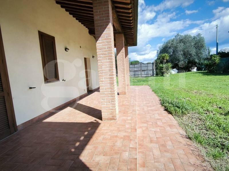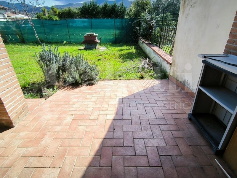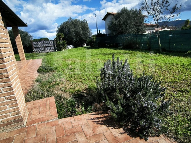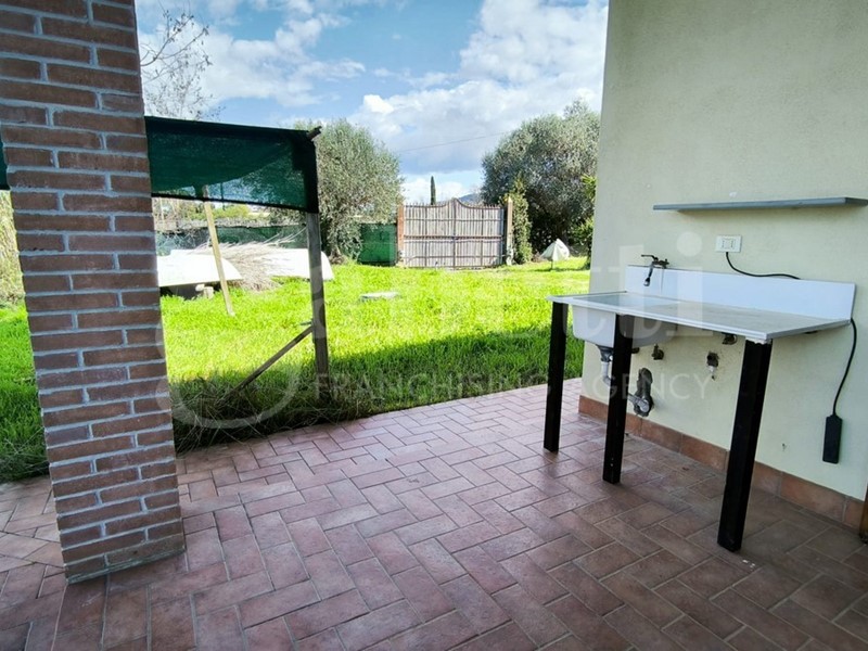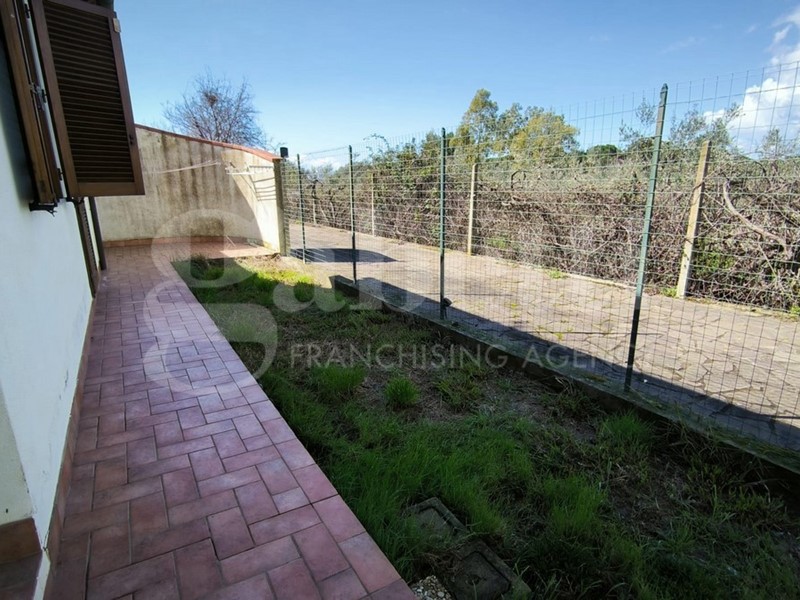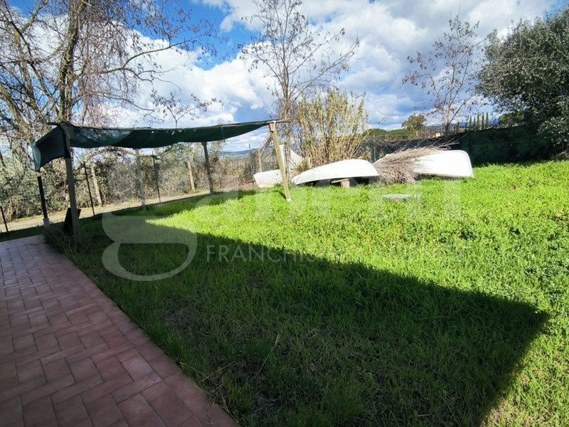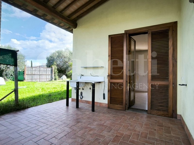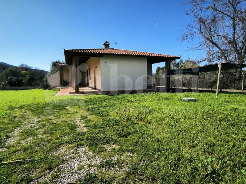 L'ampio porticato che si estende sui due lati della casa permette di godere appieno della vista sul suggestivo borgo di Scarlino, mentre l'interno, disposto su un unico piano, offre un soggiorno luminoso con angolo cottura, due camere da letto, un bagno e un vano tecnico. Il garage a piano e con finestra, accessibile tramite comoda rampa, completa questa soluzione abitativa.