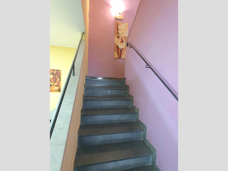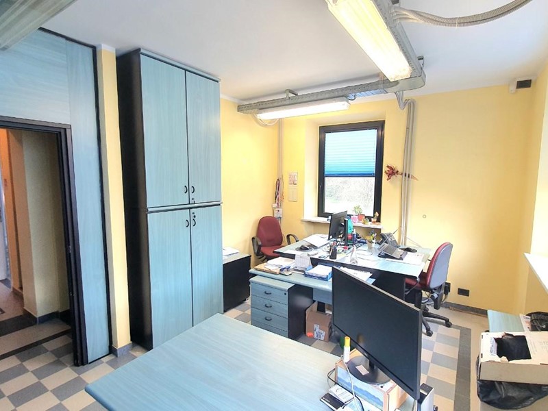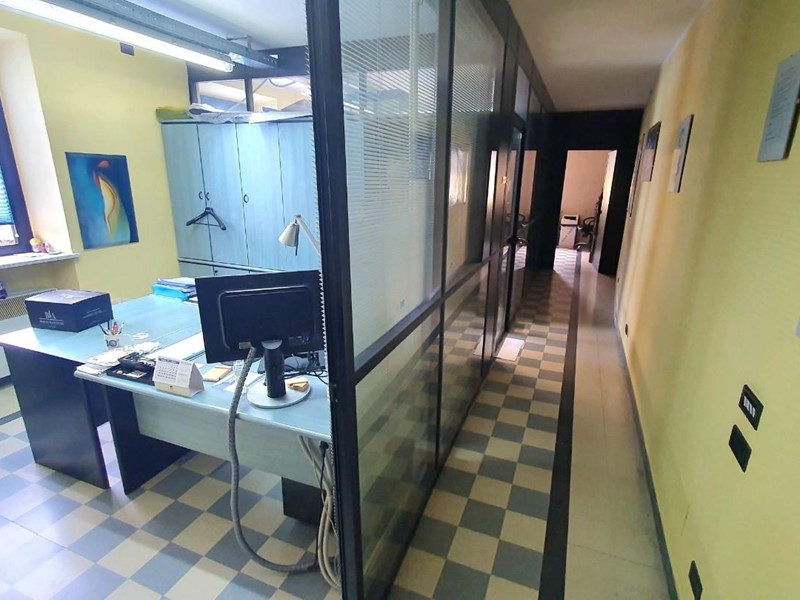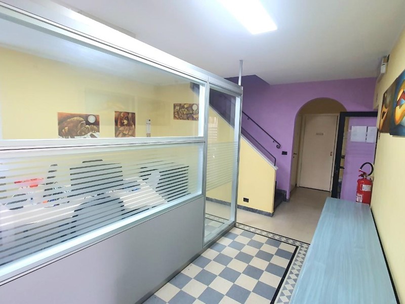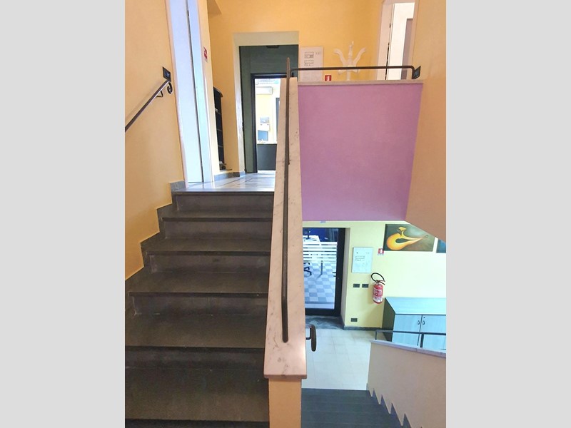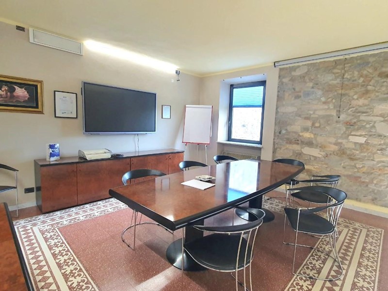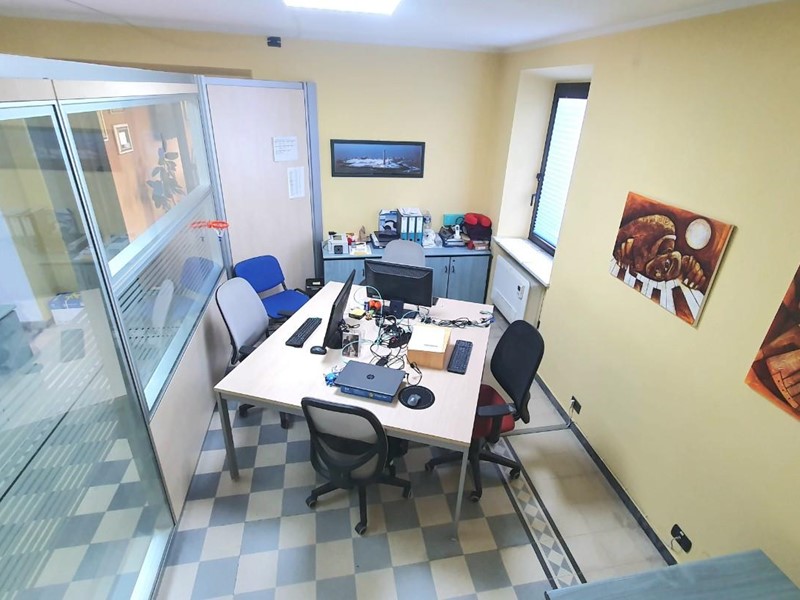 Al piano primo ci sono altri tre grandi vani anch'essi divisi , la bella sala riunioni, un ripostiglio e un bagno finestrato. Tramite scala a chiocciola si accede all'ampia soffitta praticabile.