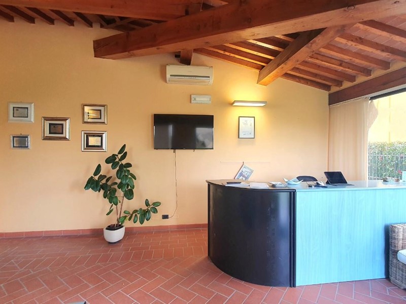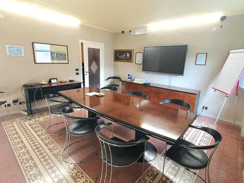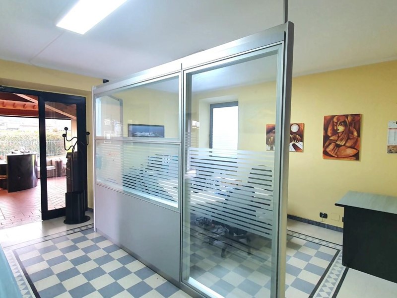 La Villa è composta al piano terra da ingresso in ampio locale accoglienza a vetri dotato di soffitto in legno dove spiccano le belle travi in castagno a vista, proseguendo dal disimpegno troviamo 3 grandi vani divisi con diverse postazioni lavoro, un vano multiuso/cucina, un ripostiglio, antibagno e due bagni.