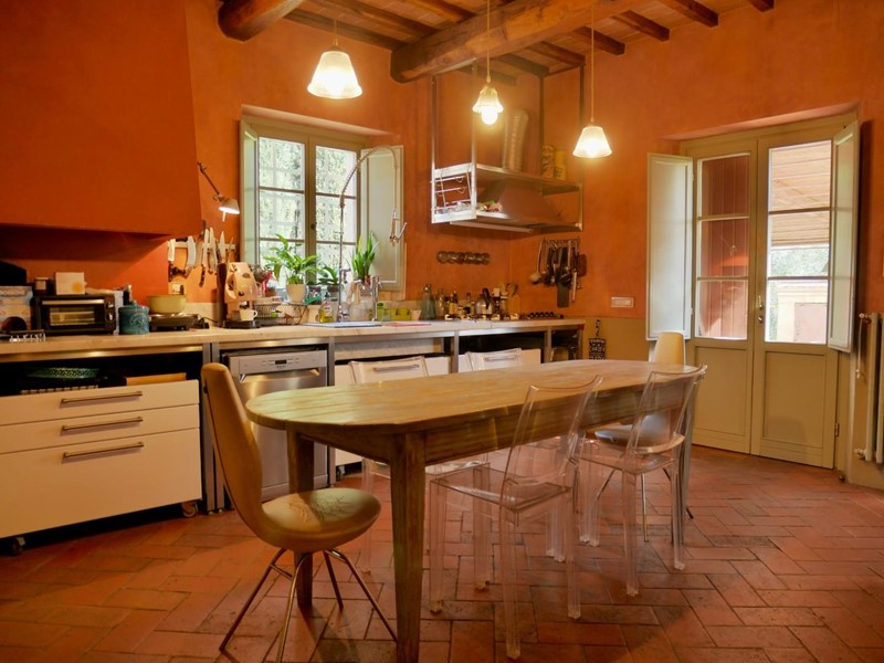 270 mq di tradizione toscana, imponente con i suoi 270 metri quadrati, incarna l'eleganza toscana mixata con un gusto più attuale e moderno, gli ambienti sono ben suddivisi ma creano armonia mantenendo ognuno la propria funzione, dall'ingresso, al doppio soggiorno arricchito da un camino in pietra, sala da pranzo oltre alla cucina molto grande impreziosita di forno a legna, a completare il piano terra troviamo un bagno ed una zona ripostiglio-lavanderia.