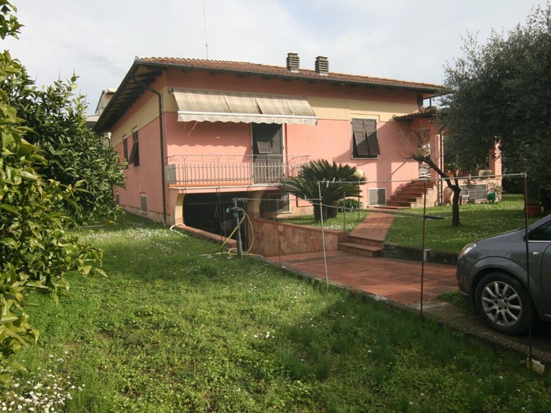 Marina di Carrara, vicino al mare, interessante proprietà composta da grande giardino piantumato (20 alberi di ulivo e alcuni alberi da frutto) con casa singola su unico piano oltre piano seminterrato. La costruzione risale all'inizio degli anni 80 (1982)...nel corso del tempo oltre all'ordinaria manutenzione sono stati istallati sul tetto i pannelli termici per la produzione di acqua calda, gli infissi di legno sono stati rivisti ed inserito il doppio vetro, la caldaia è alimentata a pellet. l'ingresso principale è dal grande portico (circa mq.65) che ci fa accedere al salone, alla cucina abitabile, bagno e ripostiglio. Nel reparto notte abbiamo tre camere matrimoniali e un bagno. Il piano accessorio seminterrato accessibile sia dall'interno che dall'esterno è stato organizzato in ampia taverna con camino e angolo cottura, camera, cantina e garage.