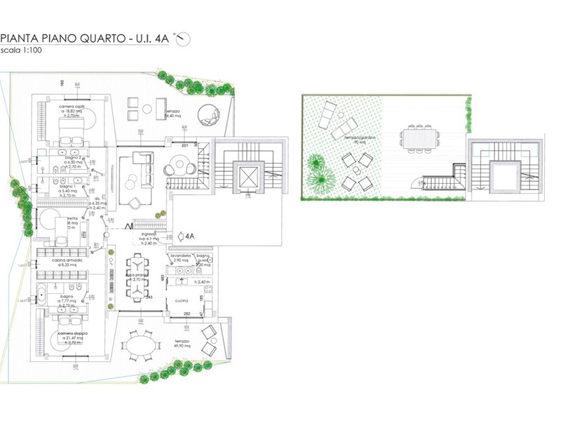 DESCRIZIONE ABITAZIONE: PANORAMICO e LUMINOSISSIMO ATTICO-SUPERATTICO con viste mozzafiato sulle Prealpi brianzole e sul verde circostante, beneficiato da una TRIPLA ESPOSIZIONE lambita, su ogni lato, da una porzione di terrazzo. Un ingresso living introduce al salone suddiviso nell'ampia ed ariosa zona living che si affaccia sul terrazzo e nella zona dining composta da sala da pranzo e cucina open plan, anch'esse affacciate, dal lato opposto, sul terrazzo. Completa la zona giorno un pratico vano di servizio/lavanderia ed un bagno ospiti. La zona notte si sviluppa lungo il corridoio a cui accedono una SUITE PADRONALE con locale guardaroba e sala da bagno (la camera da letto accede al terrazzo), una JUNIOR SUITE con BAGNO PRIVATO ed accesso al terrazzo, una terza camera ed un ulteriore bagno (tutti i bagni, ad eccezione di quello di servizio, sono dotati di finestra). Una scala aerea collega la zona living al terrazzo soprastante con locale sbarco. La superficie dei terrazzi è di circa 194 mq totali (comprensivi sia del piano quarto che del quinto).