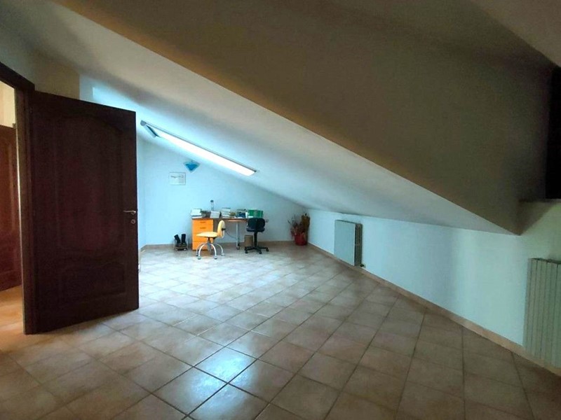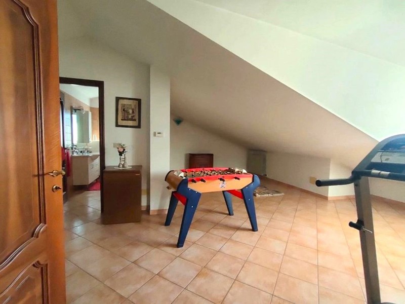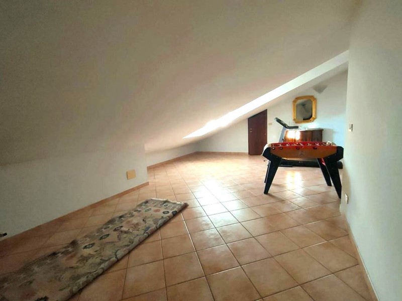 Ritornando nel soggiorno si trova la scala interna in muratura che porta al piano mansardato, dove troviamo un ampio locale open space, perfetto per sala studio o hobby, un ulteriore camera da letto e un bagno, anch'esso finestrato.