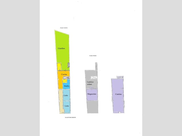 Casa indipendente in zona semicentrale, vicino a negozi e servizi, composta da ingresso, 2 camere da letto, bagno, studio, soggiorno-pranzo, cantina, magazzino al primo piano e giardino interno.
