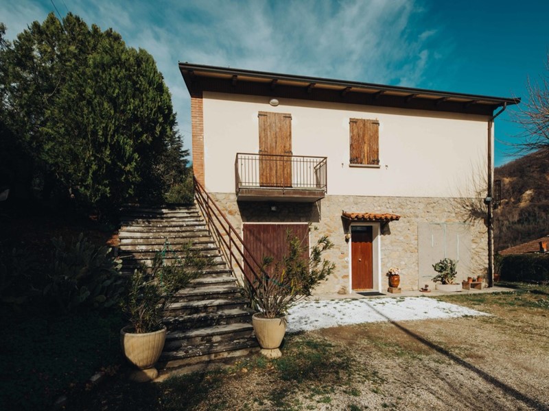 SVIM854 Cà di Bazzone, via della Quercia, in posizione predominante e con vista sulla vallata proponiamo villa indipendente composta da tre unità abitative distinte, una al piano terra e due al piano primo. L'unità al piano terra è stata ristrutturata ed è composta da ingresso su zona giorno con angolo cottura, due camere da letto (singola e matrimoniale) ed un bagno. Attualmente tale unità è regolarmente locata con scadenza contratto nel 2027. Le unità al piano primo, speculari in termini di disposizione interna, sono composte da ingresso su ampio corridoio arredabile, cucina abitabile, due camere da letto matrimoniale ognuno con balcone ed un bagno. Tali unità necessitano, con finiture ancora originali, necessitano di ristrutturazione. Completa no a proprietà un garage di 21 mq al piano terra (locato) ed una cantina. L'immobile è circondato da 1000 mq di giardino privato circa e l'accesso avviene tramite cancello elettronico. Classe Energetica G.