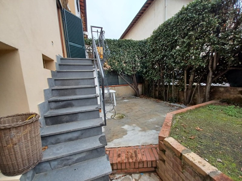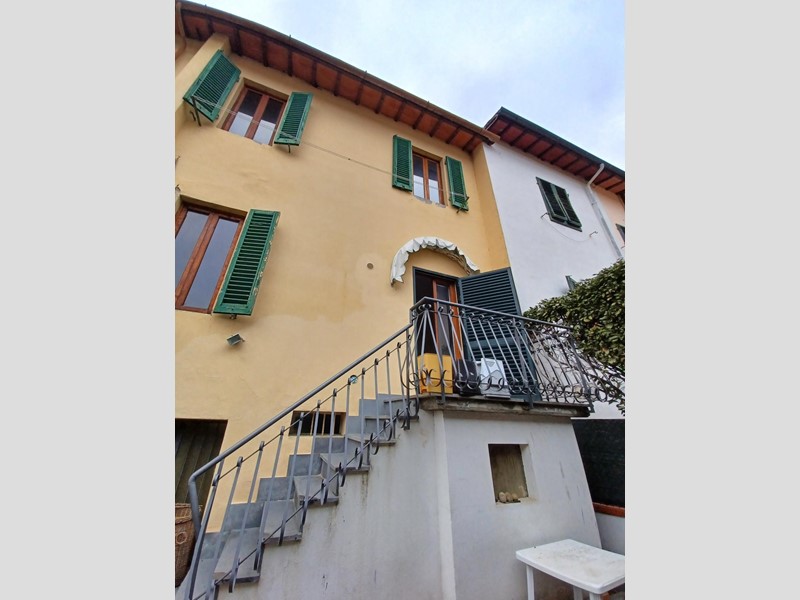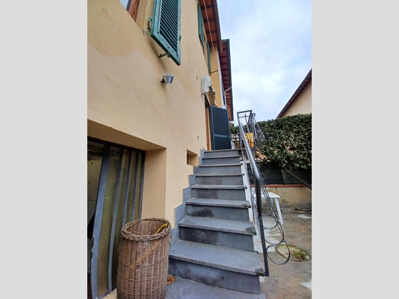 Montelupo Fiorentino pressi. A pochi passi dalla stazione e dal centro di Montelupo terratetto in buono stato di manutenzione, con all'ingresso un resede esclusivo. La parte abitativa è disposta su due livelli e composta da ingresso, sala, studio, cucina abitabile con camino a con accesso da terrazza a giardino tergale dal quale si può accedere anche ai locali uso accessorio sottostanti; al primo piano tre camere una delle quali con balcone e bagno. A piano seminterrato i locali uso accessorio son tre oltre a un wc. Subito abitabile, da rimodernare.