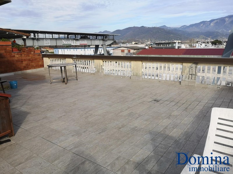 Marina di Carrara a 200 mt dal mare proponiamo in vendita trilocale al secondo e ultimo piano senza ascensore. L'appartamento è composto da ingresso, soggiorno, cucina abitabile, bagno finestrato con vasca, ripostiglio e camera matrimoniale. Da tutti gli ambienti, tranne il bagno si accede alla veramente ampia terrazza di 118 mq. Climatizzato, con posto auto e infissi nuovi in pvc, l'appartamento così com'è è l'ideale come appoggio mare o come residenza per una giovane coppia. Classe Energetica G - Epgl, nren 410.00 kWh/m2 anno. Se interessati potete richiedere maggiori informazioni per fissare un appuntamento per una visita in loco! Gli indirizzi inseriti all'interno degli annunci sono puramente indicativi e sono solo un utile aiuto nell'individuare la zona ove è ubicato l'immobile pur rispettando la privacy e la riservatezza dei venditori.