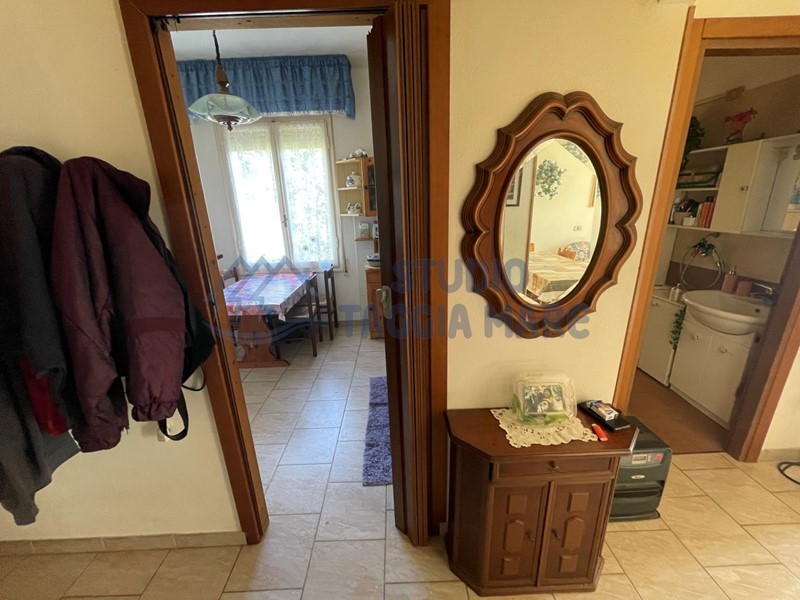 Al piano superiore troviamo la zona abitabile composta da: ingresso, da una parte: sala pranzo, due camere da letto, un bagno ed un ripostiglio. Dall'altra parte troviamo una cucina abitabile, una sala grande, una camera matrimoniale, un bagno con veranda ed un lungo balcone.