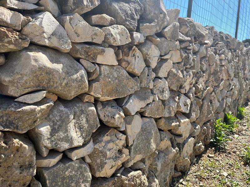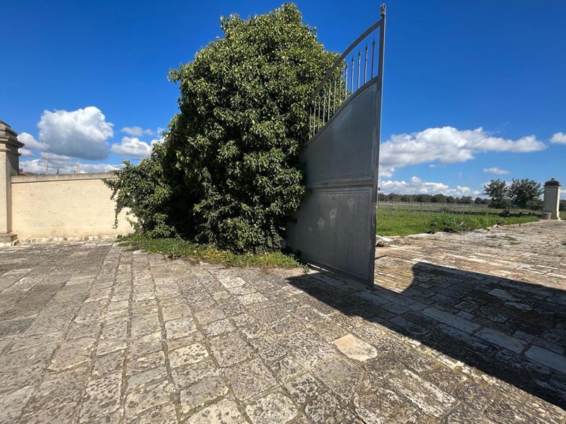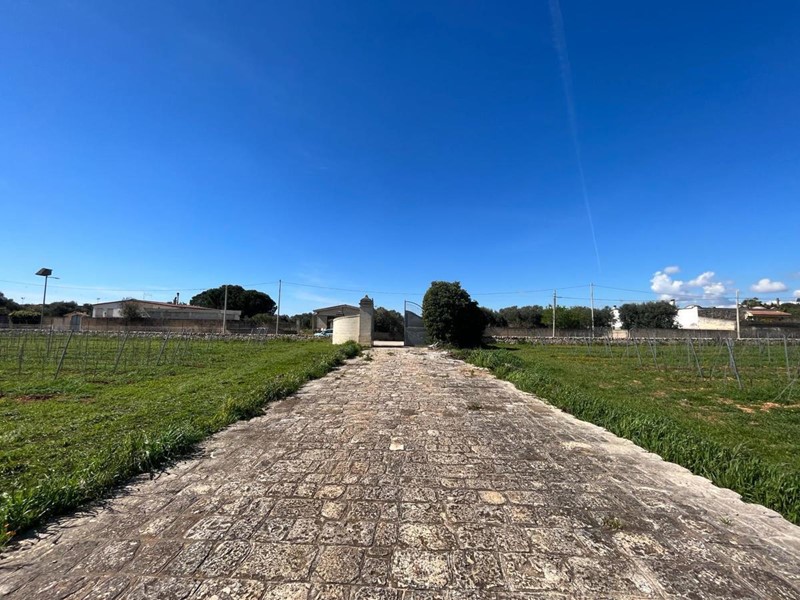 La proprietà è caratterizzata da una recinzione con muretto a secco tipico del territorio, parzialmente integrata con rete metallica, colonne in muratura e tre cancelli che garantiscono sicurezza e accessibilità. Inoltre, dispone di un piazzale antistante con pavimentazione in chianche su una superficie di 400 mq, ideale per eventuali lavorazioni o per la sosta di attrezzature agricole.