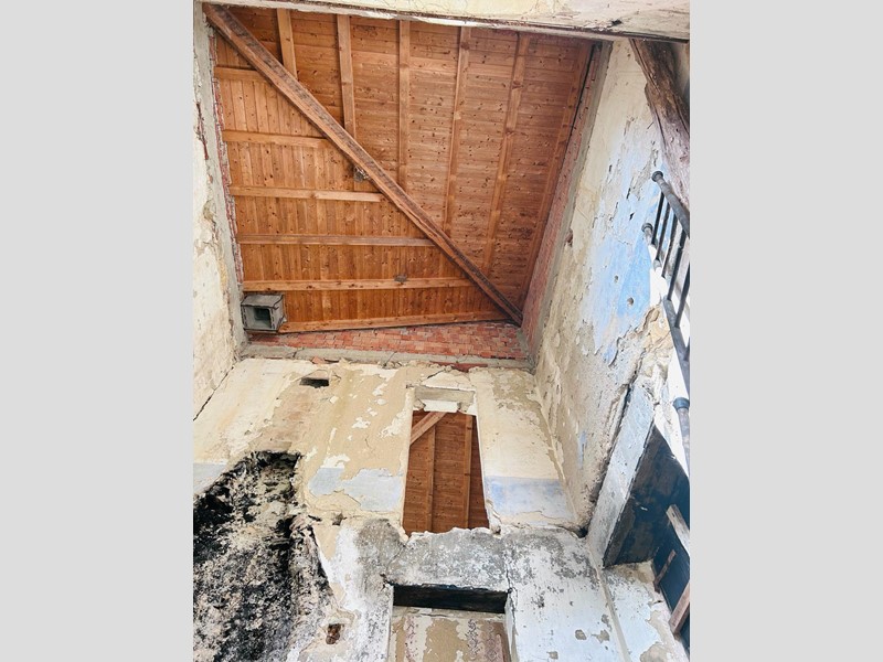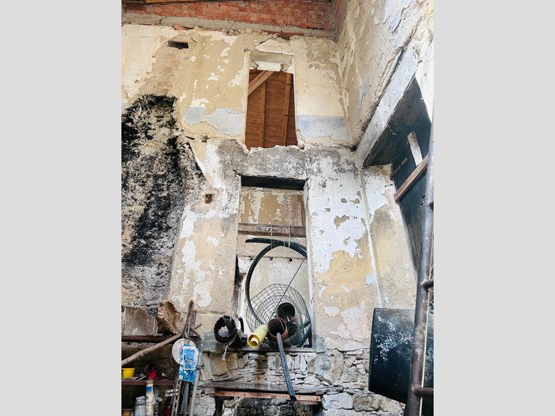 La parte da ristrutturare si compone di due locali al piano seminterrato, due locali al piano terra ed altri due al piano primo.