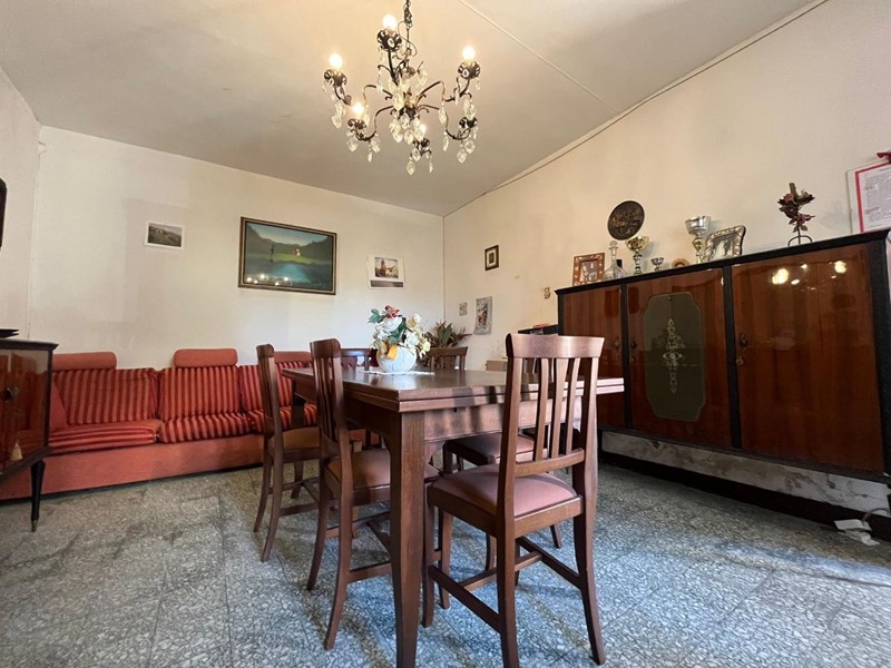 Piano terra da ingresso, sala, cucina-pranzo, ripostiglio; salendo le scale interne si giunge al piano superiore dove attraverso un ampio corridoio accediamo alle 4 camere oltre al bagno e piccola soffitta. L’immobile è corredato al piano terreno da ampio fondo di Mq. 50 circa e da posto auto coperto dal quale si accede al resede retrostante con accesso a due piccoli ripostigli e a grande terreno sopraindicato ( ideale per animali, orto, giardino, parco con piscina ecc).
