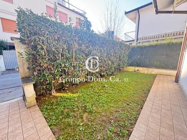 Il giardino che circonda la villa su tre lati offre uno spazio esterno ben curato, ideale per trascorrere momenti piacevoli, e include due comodi posti auto.