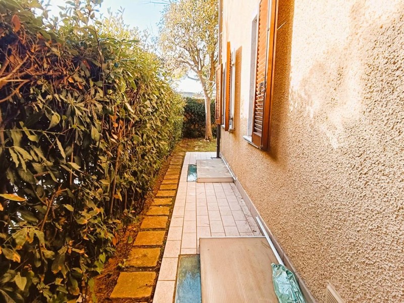 MARINA DI MASSA - A soli 500 metri dalla spiaggia ed in zona servita, si vende appartamento pari al nuovo posto al piano terra con giardino esclusivo. Internamente si compone di ingresso, luminoso soggiorno con angolo cottura, disimpegno, camera matrimoniale, cameretta e bagno con doccia finestrato. A corredo ampio garage, posto auto e cantina. L'immobile viene ceduto completo di arredamento. Aria condizionata.