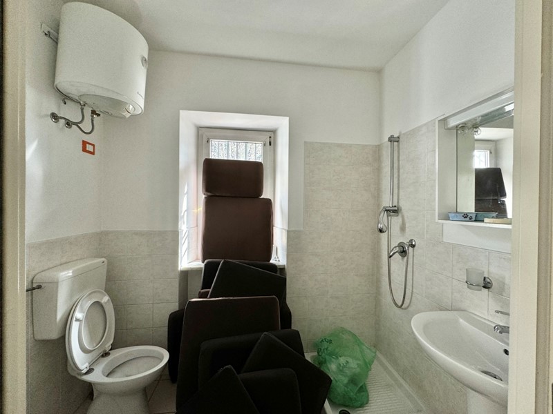 Il fondo si presenta con area esterna vivibile di proprietà, vetrina di ingresso su vano dedicato alla vendita, piccolo disimpegno, e servizio.