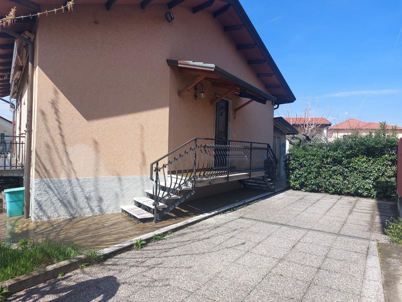 In bella posizione in bel contesto residenziale, Casa singola sviluppata su unico piano con sottostante taverna e garage, circondata da circa 300 mq. di giardino, con cucina esterna separata ideale per cucinare e mangiare in giardino, una bella terrazza abitabile, e internamente così suddivisa: ingresso, cucina abitabile con camino, soggiorno, camera matrimoniale, camera doppia, bagno, ripostiglio circa 80 mq. oltre a terrazza.