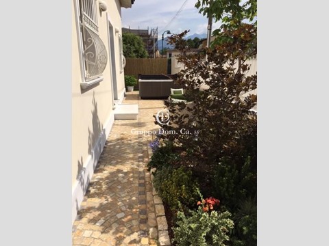 Salendo al primo piano, si scoprono tre eleganti camere da letto, ciascuna dotata di bagno privato, assicurando privacy e comfort per gli ospiti. Le rifiniture e i materiali selezionati con cura conferiscono un'elevata qualità agli ambienti, mentre la presenza di una jacuzzi e confortevoli divani sulla veranda estiva arricchiscono ulteriormente l'esperienza di vita all'aria aperta.