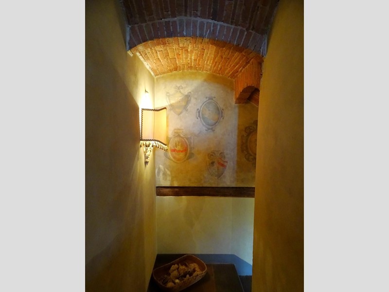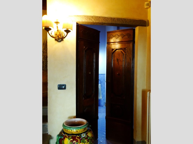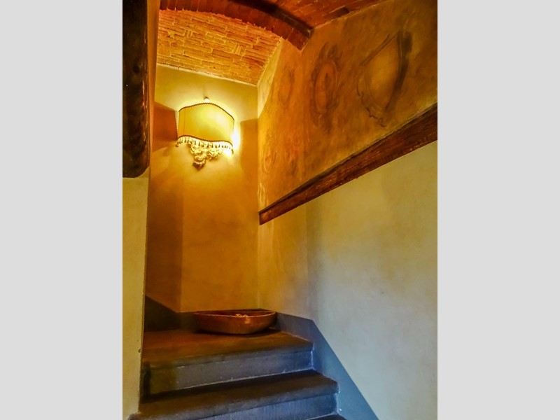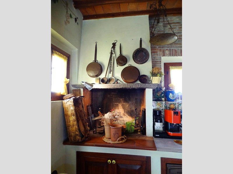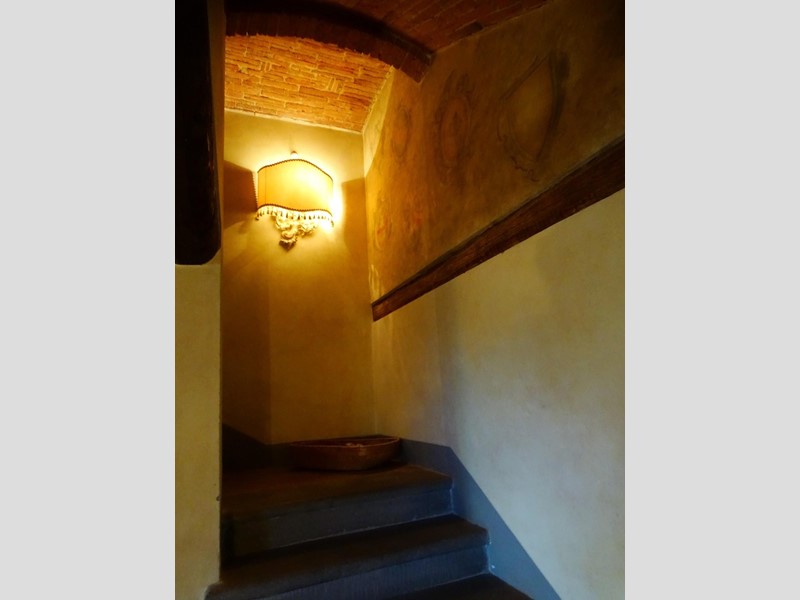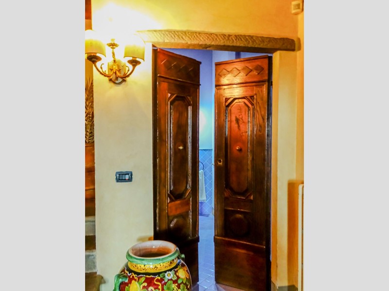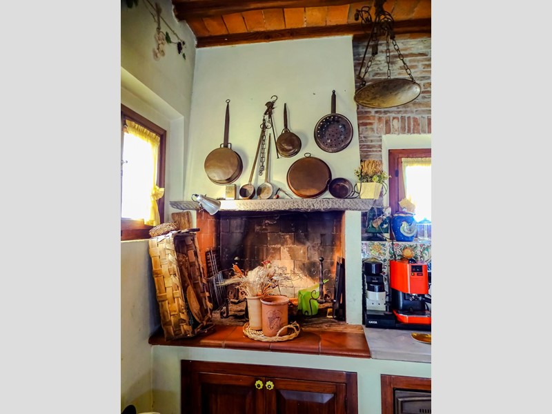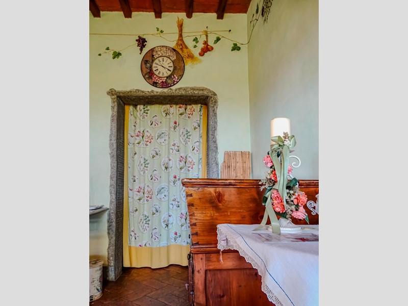 L'abitazione, di 280 mq su due piani, è internamente curatissima con elementi di pregio: grande camino in pietra, cucina con cappa ricavata da tipico camino colonico, secondo caminetto e acquaio in pietra di Santa Fiora. Molte pareti sono impreziosite da decorazioni pittoriche floreali/araldiche.