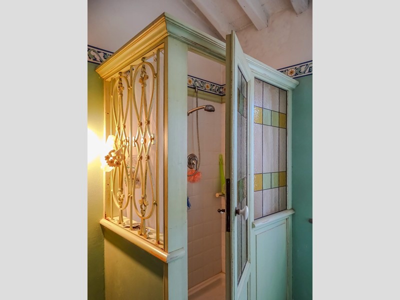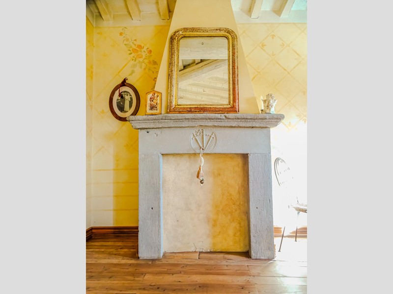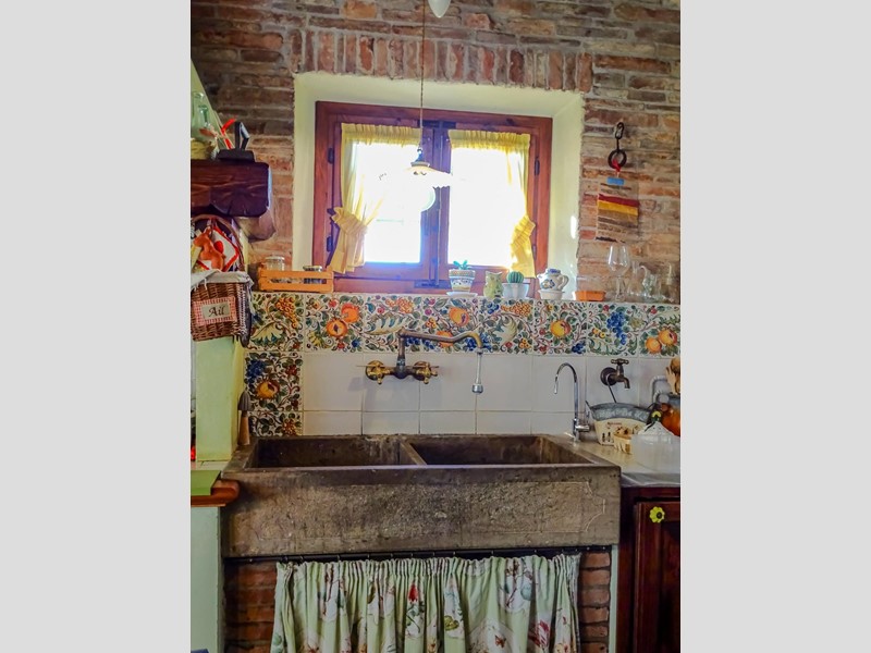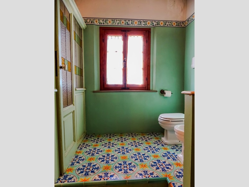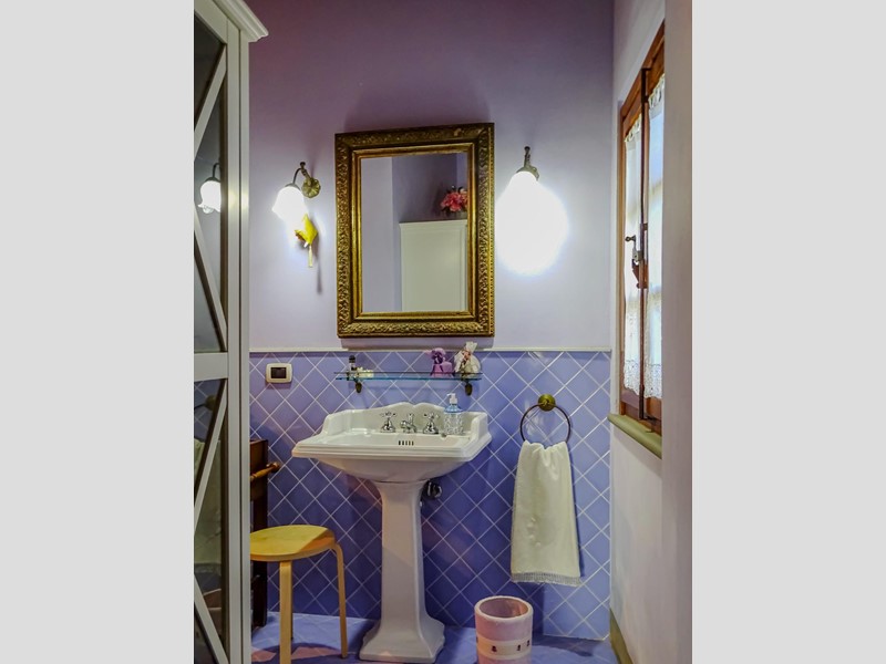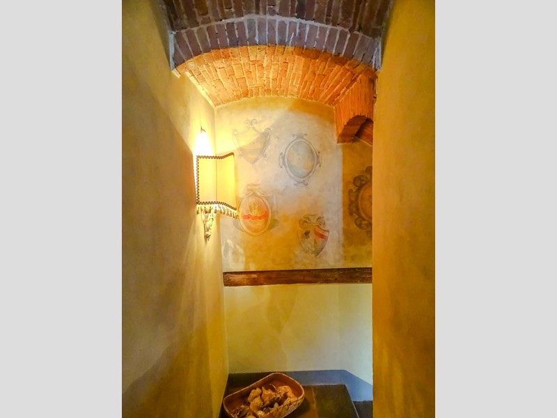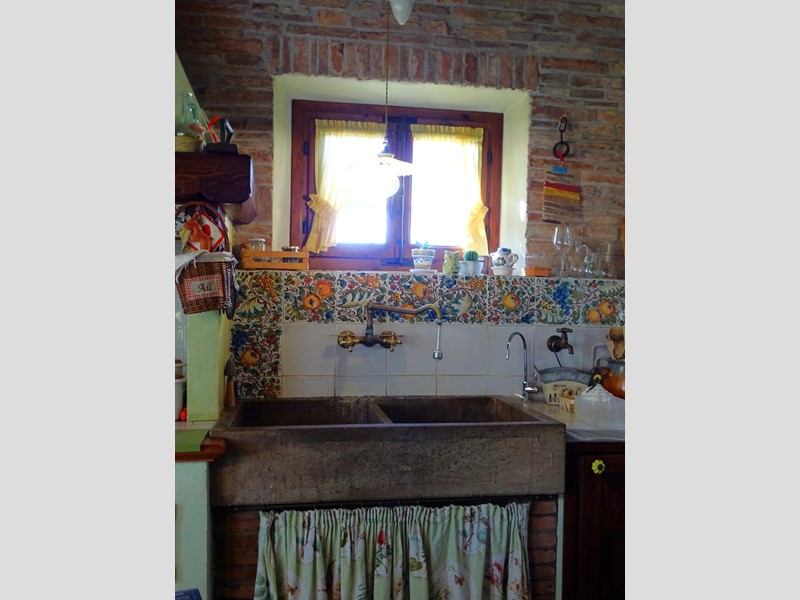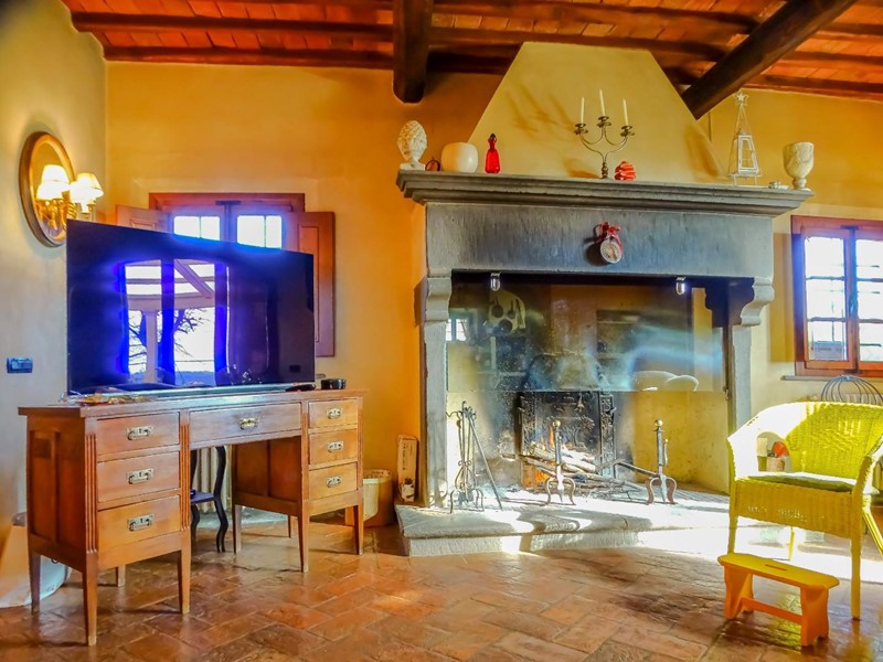 L'abitazione, di 280 mq su due piani, è internamente curatissima con elementi di pregio: grande camino in pietra, cucina con cappa ricavata da tipico camino colonico, secondo caminetto e acquaio in pietra di Santa Fiora. Molte pareti sono impreziosite da decorazioni pittoriche floreali/araldiche.