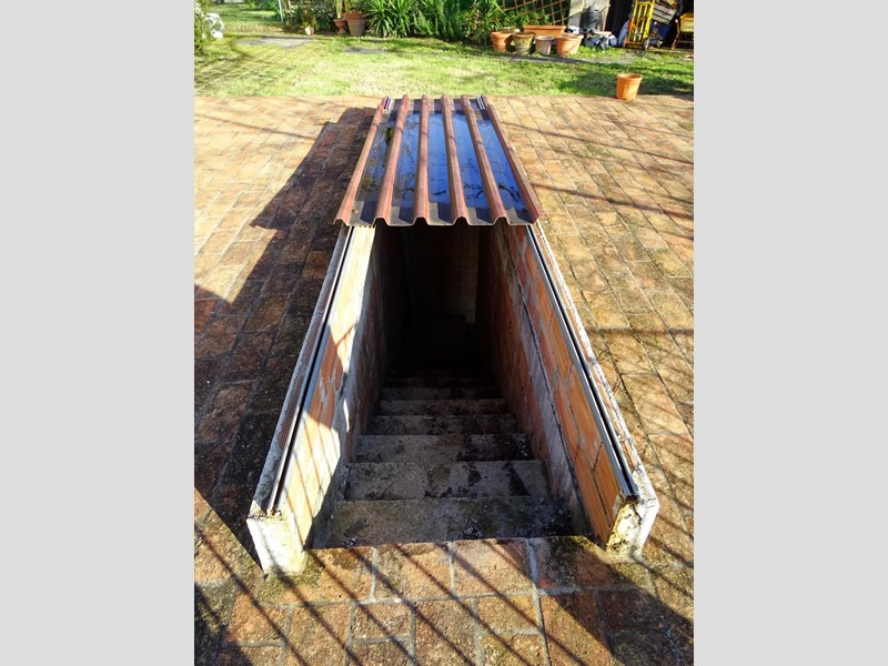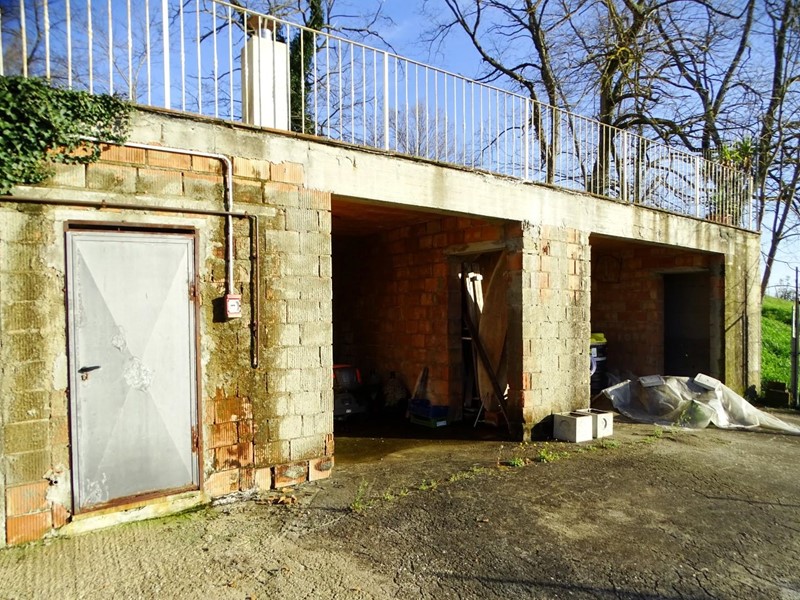 Garage interrato di 40 mq con accesso dal retro; la copertura funge da terrazza panoramica a livello giardino.