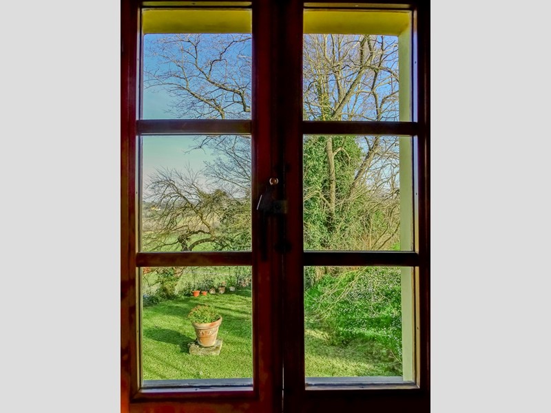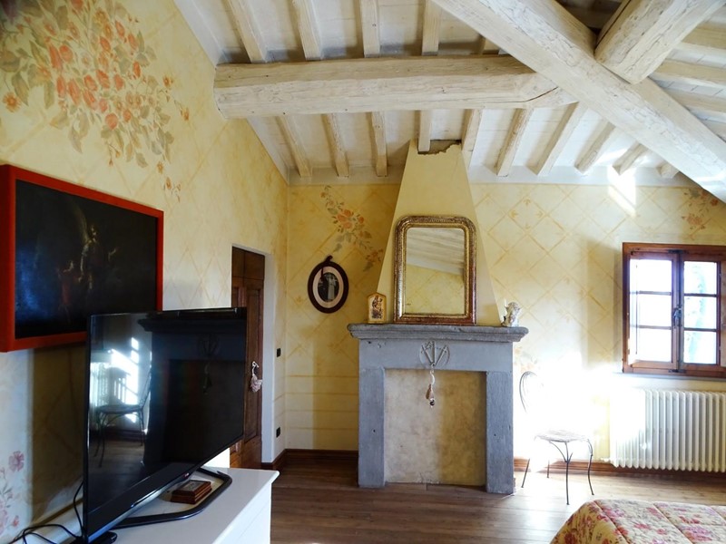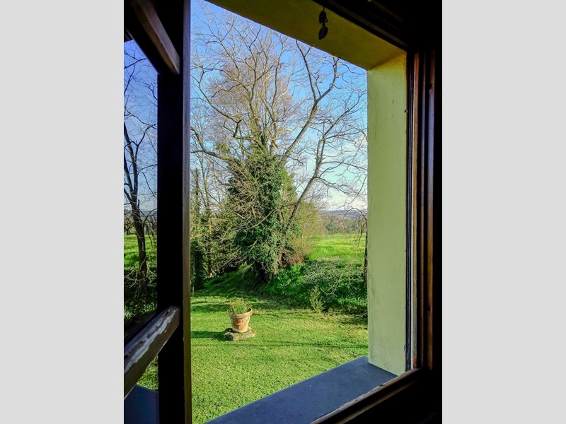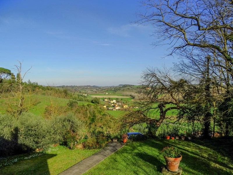 In vendita a San Miniato, magnifica porzione di casale storico del 1714, libera su tre lati e circondata da vasto giardino esclusivo. Posizione panoramica dominante sul crinale.