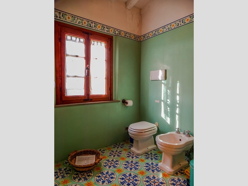 Il piano terra in cotto ospita zona giorno: ingresso, soggiorno, cucina, ripostiglio, disimpegno, studio e bagno. Le scale sono in pietra con volte a mattoni a vista.