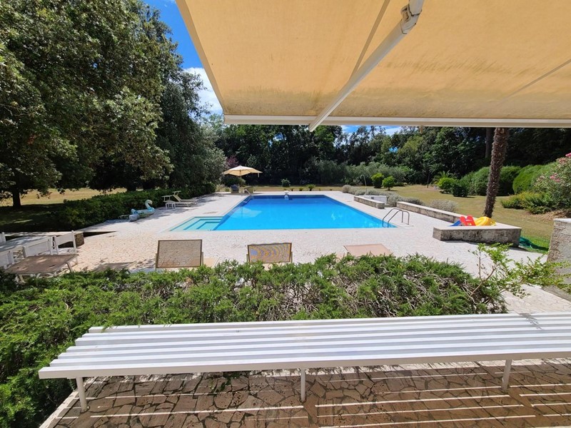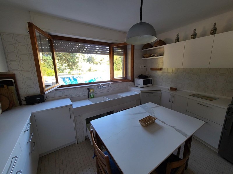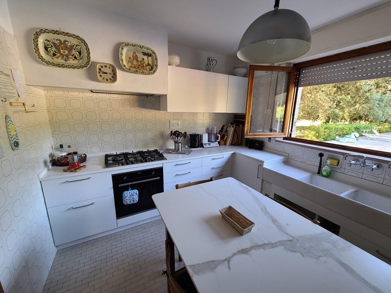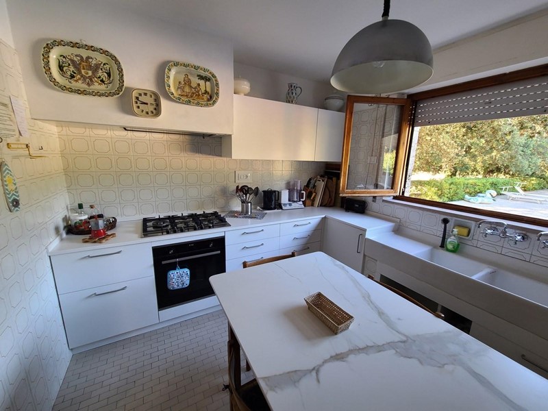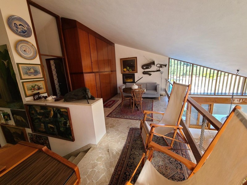 Al piano terra si trova il grande soggiorno con doppia uscita, una che affaccia sulla piscina e l'altra nella veranda coperta predisposta al soggiorno per 12/14 persone, la cucina è abitabile, una camera matrimoniale e un bagno completo, nella zona d'ingresso è predisposta la lavanderia, una cameretta e un bagno.
