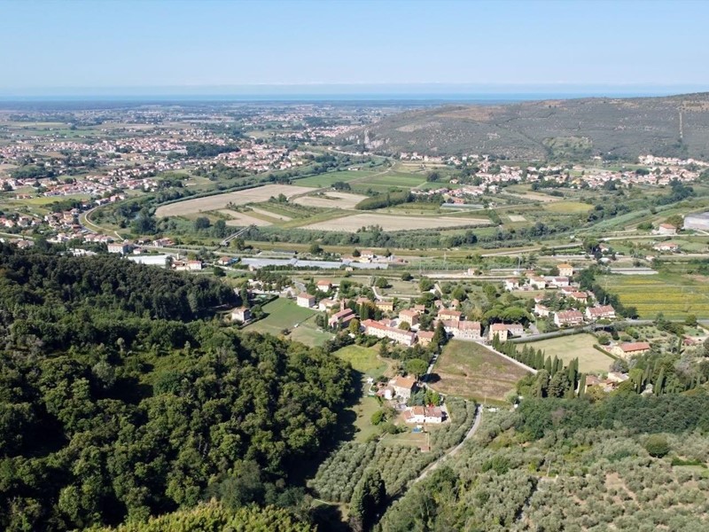 A soli 10 minuti da Pisa e 15 minuti da Lucca, in bellissima posizione panoramica con vista fino al mare e alle isole, proponiamo in vendita un piccolo borgo di fabbricati rustici di complessivi 720 mq mq totali circondati da circa 23.000 mq (2,3 ettari) di giardino/terreno (coltivato ad olivi) con piscina in muratura di 50 mq. Il borgo è formato da un grande casolare ad uso abitativo, uno più piccolo diviso in 2 appartamenti ad uso ricettivo/alberghiero, un grande magazzino e un piccolo annesso, di seguito descritti.