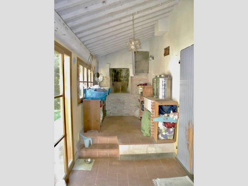A) Il casolare principale ad uso abitativo misura 355 mq disposto su due livelli oltre a soffitta praticabile ed è composto, al piano terra da ingresso in soggiorno con camino, altro grande ambiente sempre ad uso soggiorno/salotto, sala da pranzo con cucina abitabile, veranda con forno a legna, bagno, lavanderia e locale tecnico; al 1° piano, con accesso tramite scala interna, disimpegno, cinque camere matrimoniali e due bagni; il piano soffitta praticabile (con altezza massima di 2,15 mt) è composto da un unico grande vano.