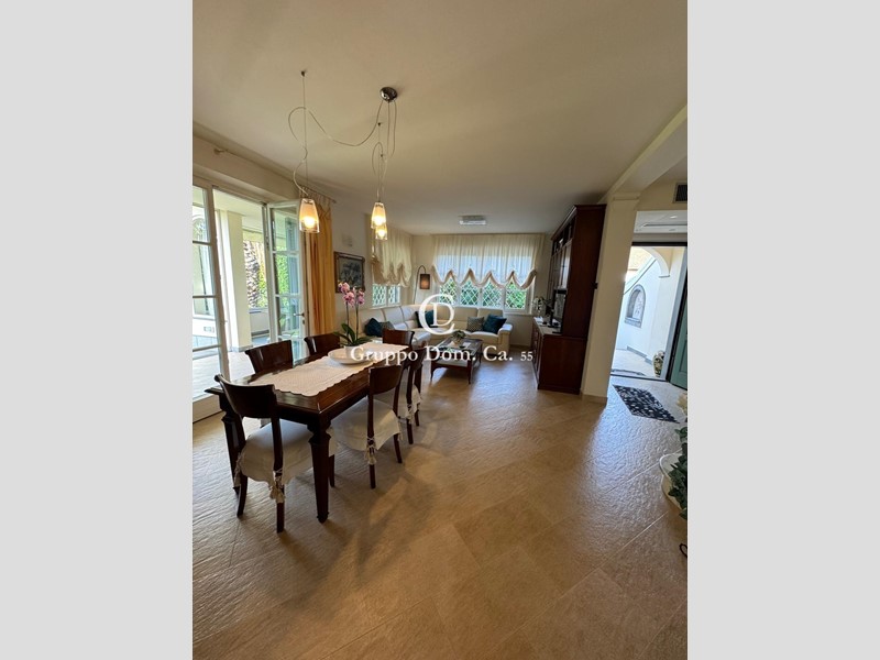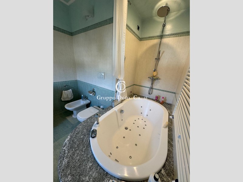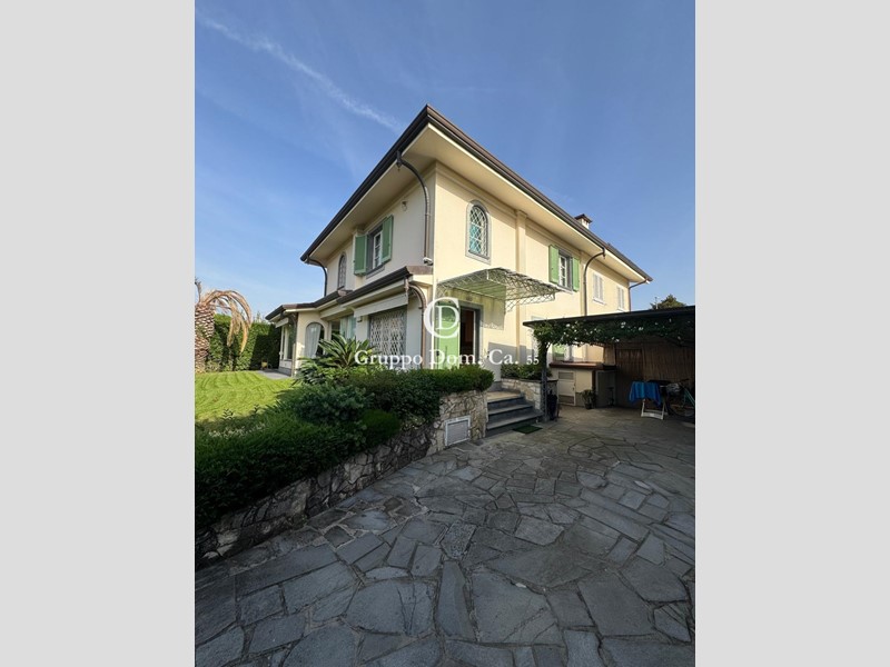 Bifamiliare in ottimo stato di manutenzione, con due posti auto coperti, arredamento classico, giardino libero su tre lati con veranda esclusiva allestita da un tavolo da pranzo. Al suo interno composta da ingresso su ampio e luminoso soggiorno, cucina abitabile, zona pranzo, una camera singola e un bagno a servizio del piano e della camera. Al piano superiore, tre camere matrimoniali ciascuna con bagno privato assicurano comfort e privacy . Il seminterrato ospita un ulteriore spazio living, una seconda cucina e un bagno, offrendo flessibilità d'uso e ulteriori comodità.