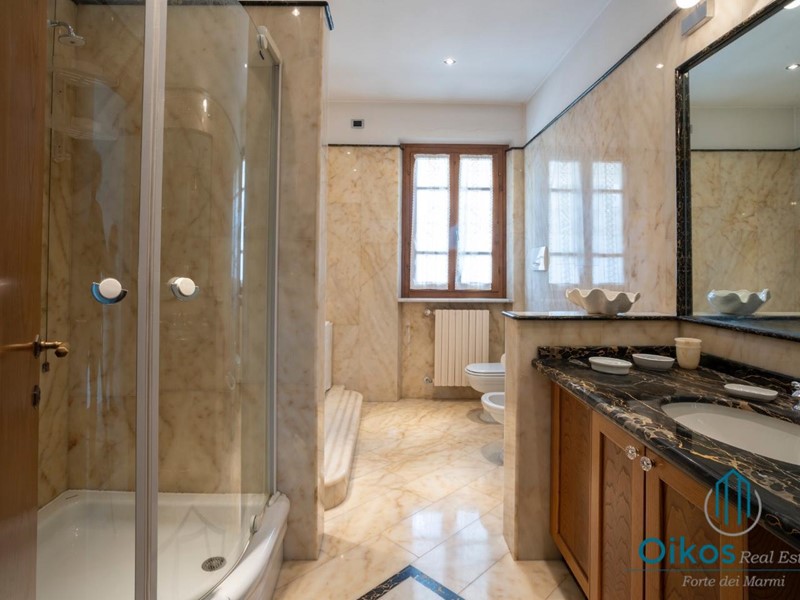 Si propone in affitto estivo a Forte dei Marmi splendida villa. La villa ha un accesso indipendente e si compone al suo esterno di un grande giardino privato, box auto. Piano terra possiamo trovare: La cucina finemente dotata di ogni elettrodomestico, forno a micronde, macchina del caffe, forno, al suo centro possiamo trovare una bellissima isola dove poter fare colazione o da usare come piano di lavoro. Dalla cucina si passa, grazie e due splendide porte a vetro a un bellissimo e luminosissimo, ampio soggiorno e sala da pranzo. Sempre al piano terra troviamo un bagno finestrato con doppio lavabo e doccia. Un’ampia camera da letto matrimoniale. Al primo piano invece troviamo Un bagno finestrato con doccia e vasca. Una camera con affaccio sui monti, con letto matrimoniale. Un’altra camera matrimoniale arredata stile anni 70, armadi e televisore. Una camera padronale ben spaziosa e arredata in modo molto elegante e un bagno padronale finestrato con doppio lavabo e doccia E per concludere con questo piano troviamo una stanza armadi. Tutte le camere hanno l’aria condizionata. Al piano secondo: Si può trovare una camera da letto matrimoniale dove si accede a un riservato terrazzo, un bagno e un cucinotto abitabile. Taverna: Abbiamo una splendida zona relax con un ampio soggiorno e zona pranzo. Una cucina anche qui molto bene attrezzata, dotato anche di un bagno con una vasca idromassaggio, doccia. In dotazione c’è anche una palestra. Per ulteriori informazioni, potete contattarci o venirci a trovare presso la nostra sede OIKOS REALE STATE in Forte dei Marmi (LU) alla via Trento n. 45/A.