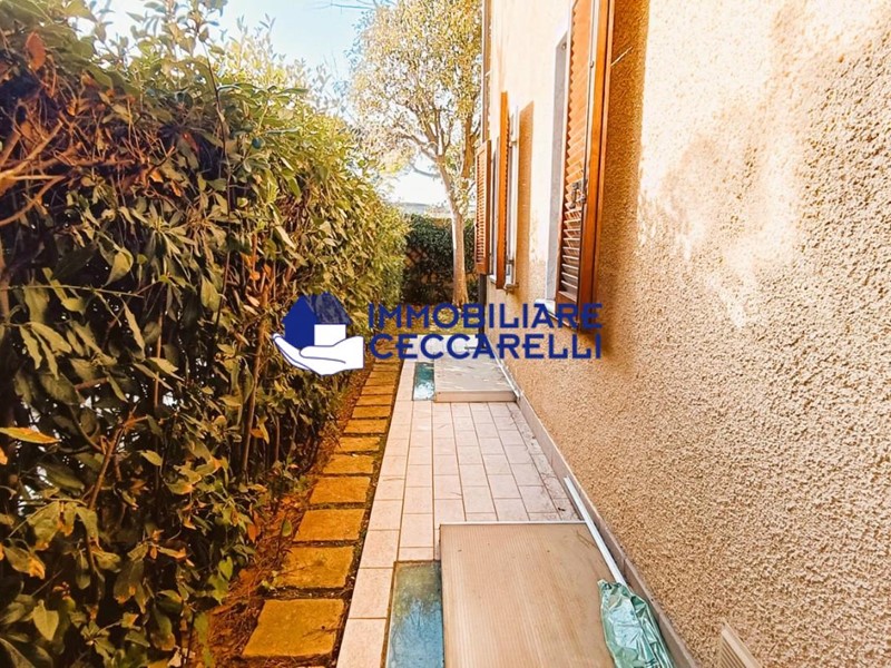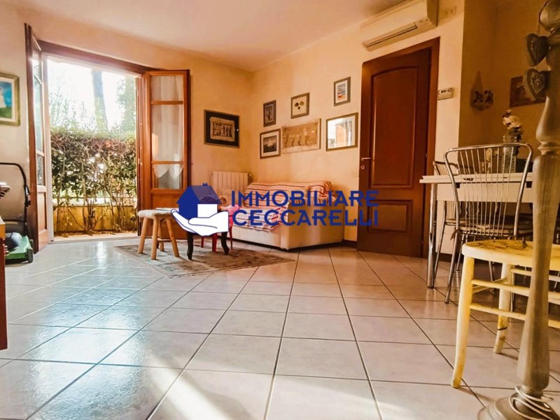 MARINA DI MASSA - A soli 500 metri dalla spiaggia ed in zona ben servita, appartamento pari al nuovo posto al piano terra con giardino esclusivo. Internamente si compone di ingresso, luminoso soggiorno con angolo cottura, disimpegno, camera matrimoniale, cameretta e bagno con doccia finestrato. A corredo ampio garage, posto auto e cantina. L'immobile viene ceduto completo di arredamento. Dotato di aria condizionata.