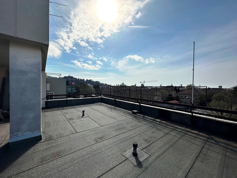 Dalla scala condominiale si accede alla terrazza, parzialmente coperta, di proprietà esclusiva con vista sul castello di Brescia.