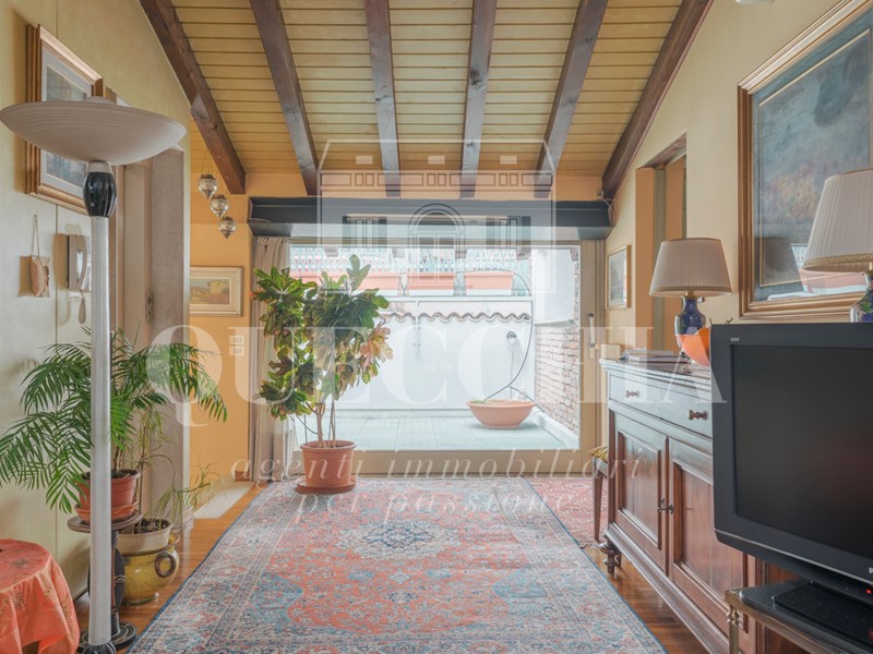 VIA GRAMSCI INTERNA, ultimo piano in signorile palazzetto bifamiliare, splendido quadrilocale di 194 mq con terrazzo di 24 mq e garage doppio al piano terra. Posto al 2° piano con ascensore che arriva direttamente in appartamento e che conduce anche al piano interrato. Completamente ristrutturato nel 1985 e tenuto benissimo. Silenziosissimo. Disposto su 2 piani, è composto da ampio soggiorno, cucina separata, 3 camere da letto e doppi servizi. Ampio interrato di 64 mq composto da taverna con camino, cantina e bagno. Aria condizionata. Riscaldamento autonomo. Classe G - 215 Kwh/mqa.