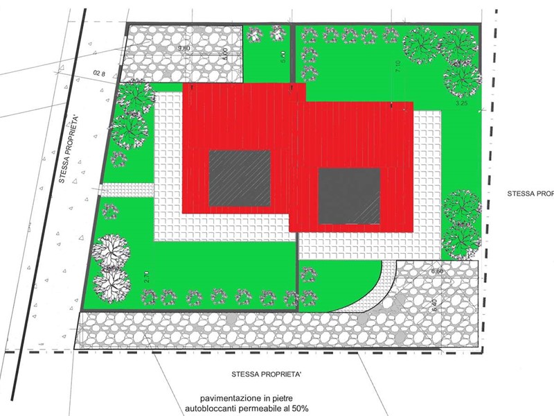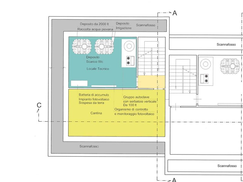 Dotazioni di capitolato: riscaldamento a pavimento di ultima generazione con pompa di calore abbinato ad impianto fotovoltaico di 6 Kw con batteria di accumulo di 10 Kw, impianto di climatizzazione estiva, predisposizione allarme ed addolcitore, persiane in alluminio con ante orientabili, infissi interni in pvc con apertura anta-ribalta, sistema di recupero acque piovane e ventilazione meccanica controllata.