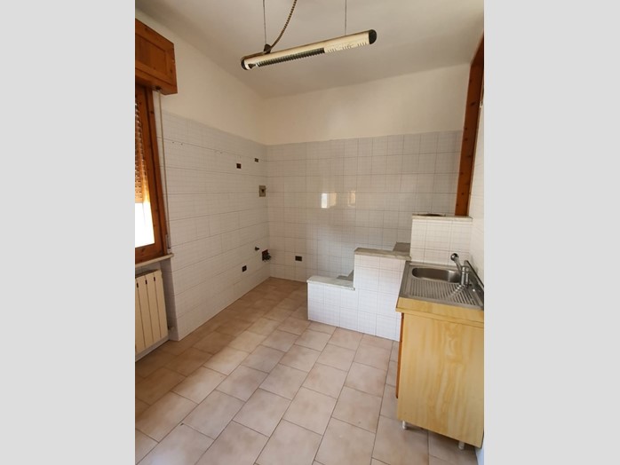 Vendesi porzione di casa situato a breve distanza dal borgo storico, posizione molto tranquilla, principali servizi a portata di mano. L'immobile si propone in questo modo: al primo piano troviamo l'appartamento composto da due camere, una singola e una matrimoniale (piccolo bagno annesso), una sala da pranzo unita al soggiorno, una cucina abitabile e un bagno. Il piano secondo è un sottotetto grezzo, adibito attualmente a soffitta, con possibilità di ricavare, dalla parte più alta (2.65m), almeno un'altra camera da letto con bagno. Al piano terra troviamo invece due locali commerciali di eguale dimensione, utilizzabili come negozi, oppure come magazzino, studio, estensione abitabile dell'appartamento stesso. Ingresso indipendente con corte esclusiva destinata a parcheggio. - Maggiori Dettagli: Cucina Abitabile