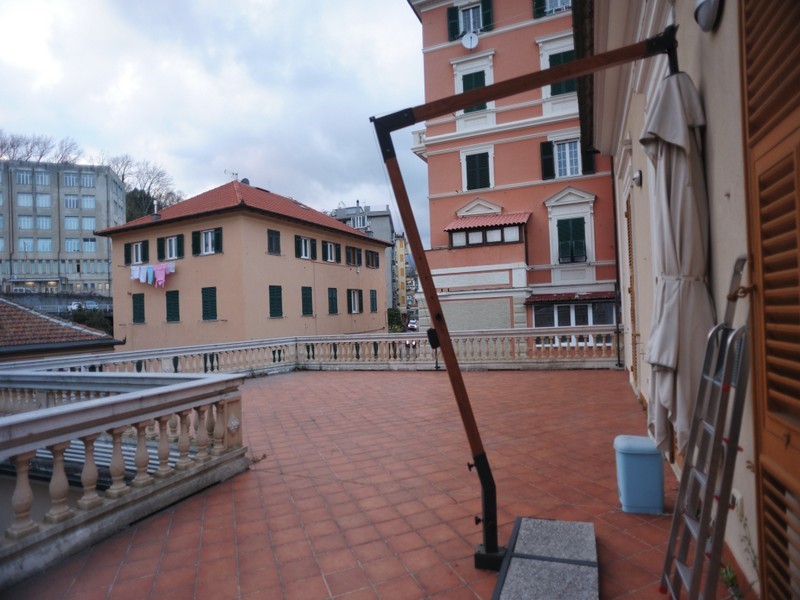 Genova Pontedecimo, in villa esclusiva totalmente immersa nel verde del parco esclusivo recintato con cancello automatizzato, zona riservata centrale e ottimamente servita - vendiamo alloggio al piano nobile; recente ristrutturazione totale, con ascensore, ottime finiture elevato comfort: ingresso, soggiorno ampio con angolo cottura attrezzato, tre camere, bagno/vasca, bagno/doccia; ampio terrazzo vivibile al piano; riscaldamento autonomo, portoncino blindato. Con arredamento, abitabile. Posto auto di proprietà nel parco, compreso. Eventuale box a parte, accesso diretto ascensore. Cert.energ.: G EPgl,nren 180,48 kwh/mq.anno. Alinghi R.E. srls – mail: info.alinghire@gmail.com - tel. 333 2356265.