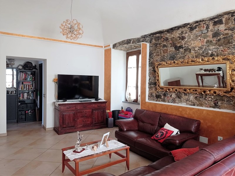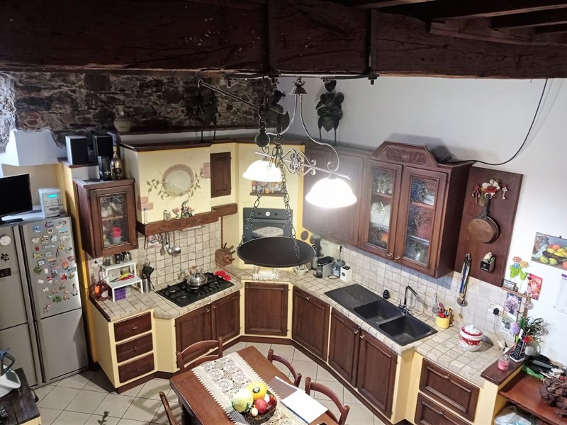 Fosdinovo in centro storico, con affaccio su piazza Cairoli, ampio e luminoso appartamento disposto su due livelli e con doppio ingresso, uno indipendente ed uno dal vano scala condominiale. Ingresso principale dal vano scale condominale al piano primo in salone ampio e molto luminoso con soffitto a volta con altezza 3,50 circa, cucinotto, disimpegno, bagno con vasca e doccia, due camere matrimoniali e studio. Dal disimpegno si accede alla terrazza sui tetti del paese e con magnifica vista mare. Dal disimpegno si accede al piano intermedio composto da salotto e bagno e scendendo ancora si accede alla taverna con altezza 3,50 arredata con ampia cucina, attraverso un corridoio si accede poi alla cantina ed al secondo ingresso dell'abitazione. Immobile ristrutturato nel 2010 ed in ottimo stato di conservazione. Impianto di riscaldamento a pavimento, e pannelli solari per acqua termosanitaria. Impianto di riscaldamento alimento da caldaia tradizionale a gas e stufa caldaia a pellets. Immobile di ampie dimensioni e comodo al parcheggio, con gestione delle spese ben economicizzata, adatta a 2 nuclei familiari o ad attività ricettiva.