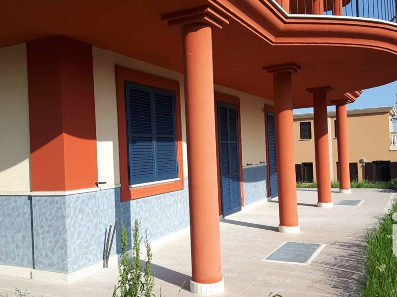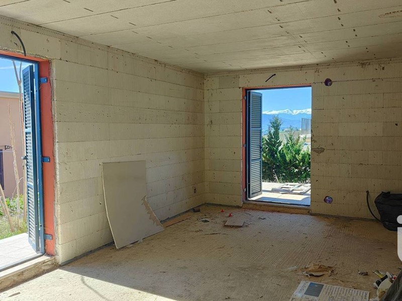 OFFIDA – Appartamento in villa bifamiliare allo stato grezzo interno in complesso residenziale panoramico. L'immobile di circa mq 72 coperti è posto al piano terra e può essere suddiviso in soggiorno con angolo cottura a vista, camera matrimoniale, uno studio/cameretta, disimpegno e bagno. Una scala interna di collegamento conduce al piano interrato di complessivi mq 80 circa dove vi è un ampio locale con servizi che può essere adibito a rustico con cucinino, oltre garage di circa mq 30. Completano la proprietà un loggiato di circa mq 20 ed un giardino di circa mq 300. Possibilità di acquistare l’immobile chiavi in mani con contratto di appalto da firmare separatamente. Il fabbricato è classificato in “Classe energetica A. PREZZO TRATTABILE. Posizione panoramica esclusiva. Rif.6699 DiLeoImmobiliare
