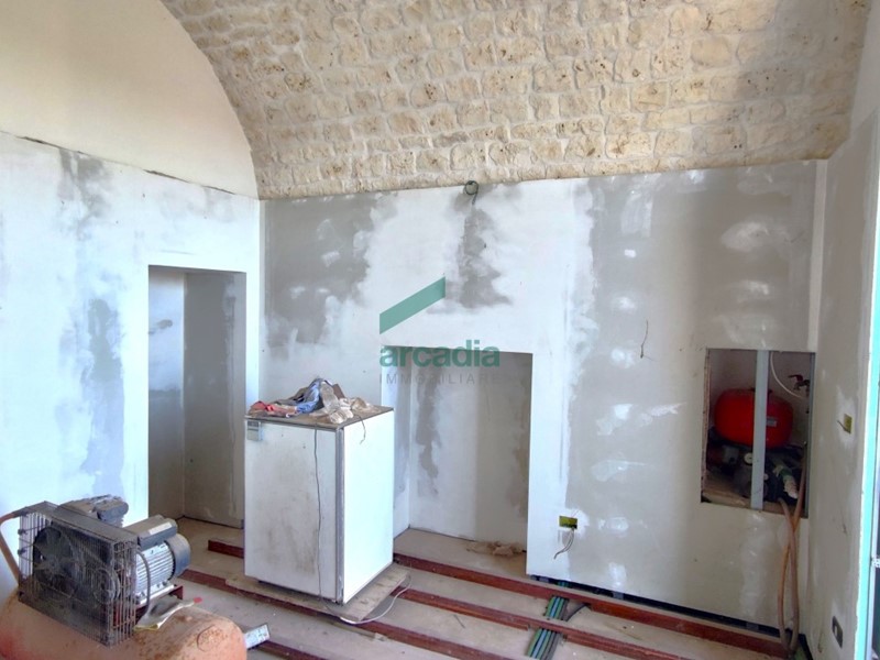 Arcadia Immobiliare propone in vendita a Noci, in contrada Lezzi, un casale in pietra di circa 80 mq in fase di ristrutturazione, con possibilità di personalizzazione. La proprietà comprende anche un ampio garage di 150 mq al piano inferiore e un terreno di circa 5.000 mq. L’abitazione si compone di soggiorno, cucina, due camere, bagno e terrazzo con vista sulla campagna e macchia boschiva. Situato in zona residenziale abitata tutto l’anno, a 10 km da Alberobello e 30 km da Monopoli.