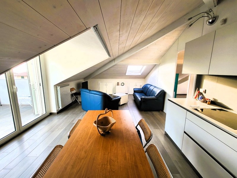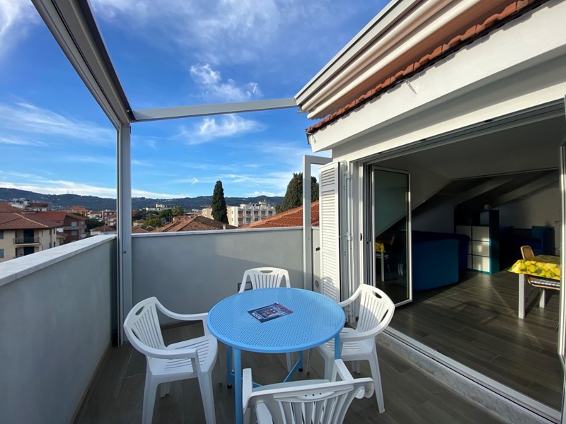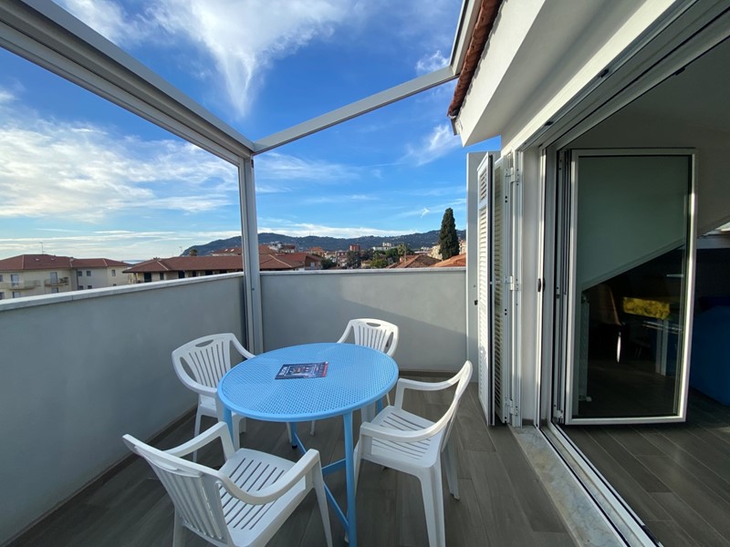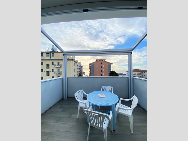 San Bartolomeo al Mare a 50 mt dal mare in palazzina elegante e signorile proponiamo attico mansardato completamente ristrutturato. Appartamento sito al terzo ed ultimo piano è composto da un ampio soggiorno con angolo cottura che ha l'accesso sul terrazzo a vasca di 12 mq circa con vista mare dotato di pergola sole/pioggia elettrica; una camera da letto matrimoniale, un spazio adibito a cameretta, bagno finestrato con doccia, lavanderia. Riscaldamento autonomo a metano ed è presente la climatizzazione caldo/freddo. Oltre alle classiche finestre sono presenti 4 velux dotate di serramenti oscuranti, tapparelle e sono termo isolanti. Completa la proprietà il posto auto sito al piano terra nel cortile privato dotato di cancello elettrico. L'alloggio viene venduto arredato con mobili su misura.