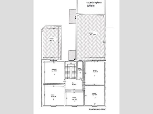 Terratetto centrale con resede frontale e accesso al garage. Piano terra ampio ingresso, soggiorno, sala pranzo, cucina, bagno, accesso al retro con ampio resede con locali accessori e bagno, al piano primo , n 5 camere con bagno.