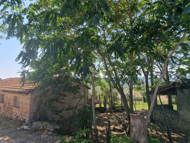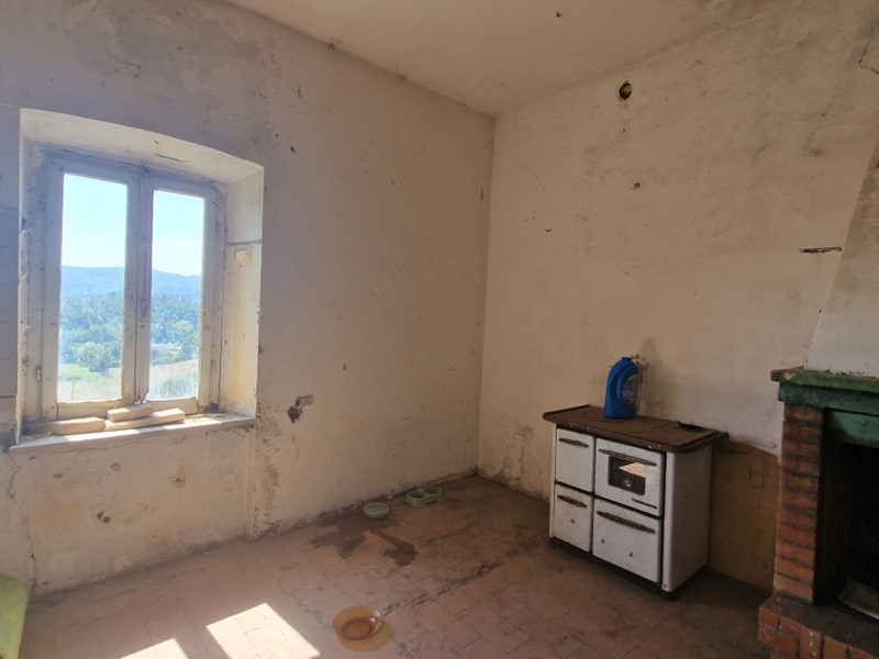 Al piano a terra ci sono le classiche stalle molto affascinanti nel loro aspetto mentre al piano superiore due stanze da letto, cucina con camino e un bagno. Il terreno agricolo di poco meno di un ettaro e mezzo con 95 piante di olivo ha un affaccio panoramico straordinario.