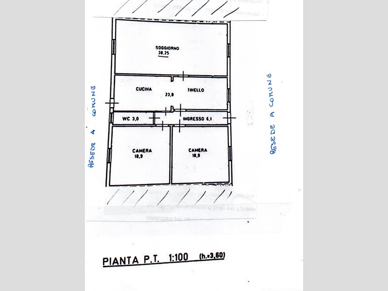 composto da ingresso, cucina-pranzo ampio soggiorno, 2 camere e bagno. Giardino sul fronte dell'edificio di circa 250 mt . Necessità lavori di ristrutturazione