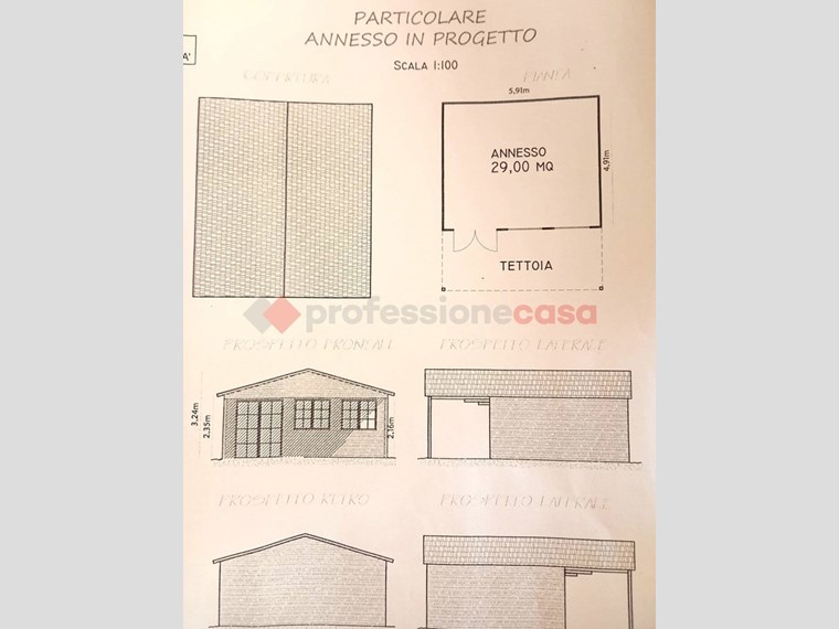 E' stato realizzato anche un annesso in legno ad uso magazzino di 29 mq oltre ad una tettoia.