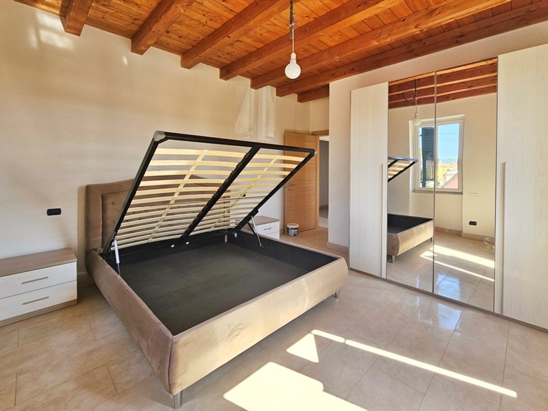L'immobile si posiziona in piccola palazzina di sole 4 unità immobiliari, al primo ed ultimo piano dello stabile, con annesso posto auto in area recintata (con possibilità di acquisto secondo posto auto), a meno di un kilometro dal centro di Sarzana, a pachi passi da tutti i servizi essenziali; L'appartamento è così composto: ingresso tramite scala esterna, soggiorno con affaccio sul terrazzino di proprietà, cucina semi-abitabile, disimpegno, camera matrimoniale, bagno finestrato con doccia, locale studio con terrazzino e mansarda uso ripostiglio accessibile tramite botola con scala interna;