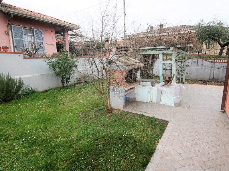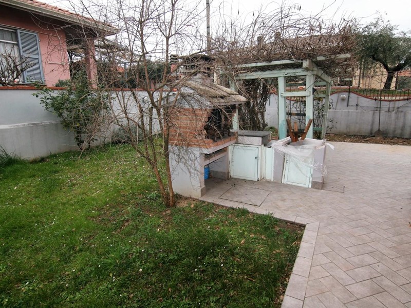 Rif 433 Dogana - Luni - In bel quartiere residenziale, nel verde vendiamo all' interno di un piccola e ben tenuta villetta con sole 3 unità immobiliari APPARTAMENTO al piano terra con BEL GIARDINO ANGOLARE. Ingresso, corridoio, cucina abitabile, soggiorno con camino, 2 camere, bagno, balcone e 2 cantine al piano interrato di circa 45 mq. L alloggio presenta ottime ed in alcuni casi recentissime rifiniture di pregio ( Cotto nella zona giorno, parquet in teak nelle camere, rivestimenti in bisazza nel bagno, resina in cucina, infissi in legno con tripla camera). Climatizzata. Il giardino è attrezzato e vivibile. No condominio. Euro 238000 .