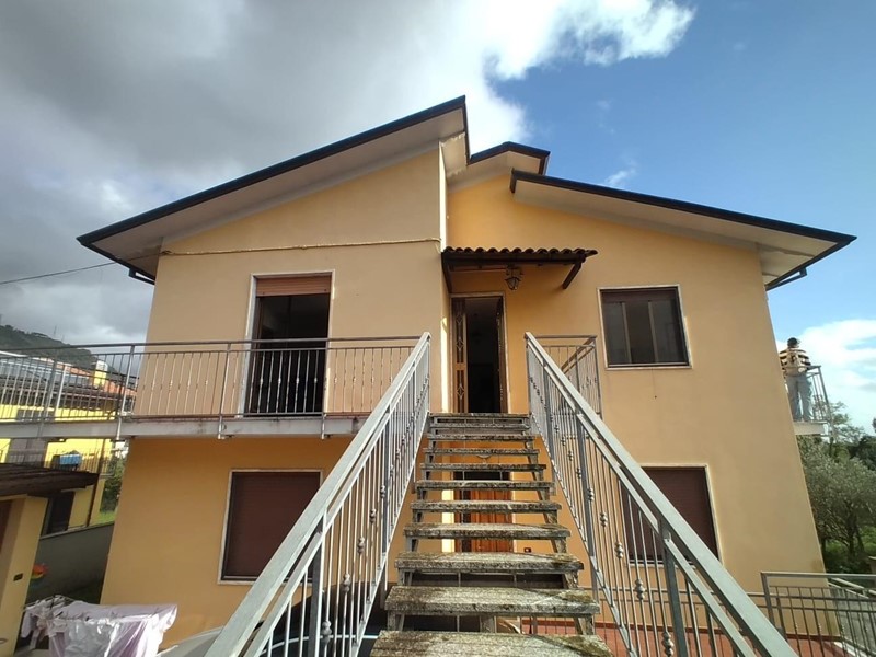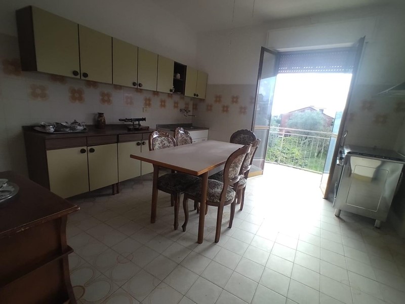 Rif. 437 In contesto tranquillo e nel verde alle pendici di una graziosa prima collina, vicinissimo a tutti i servizi e A SOLI 3 KM DAL al mare vendiamo APPARTAMENTO IN BIFAMILIARE CON 250 MQ DI GIARDINO : piano primo, ingresso, corridoio, cucina abitabile con terrazza, ampio soggiorno delimitato da balcone perimetrale, al termine del quale si trova un piccolo ripostiglio, due camere matrimoniali di cui una con terrazza, bagno e sottotetto parzialmente praticabile con accesso da botola. La proprietà è corredata da giardino lato nord, ampia corte carrabile pavimentata lato sud alla quale si accede da cancello automatico e cantina di 25mq lato sud. Recentemente il bagno è stato completamente rifatto e sono stati installati nuovi termosifoni in tutte le stanze. Per il resto si presenta da ammodernare. Euro 196000 trattabili