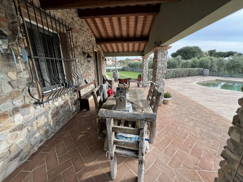 La villa è circondata da ampio parco , in parte ad uliveto, su cui insiste una piscina di mt 6 x 12, un campetto di calcio, una zona a posti auto ed un locale ad uso magazzino.
