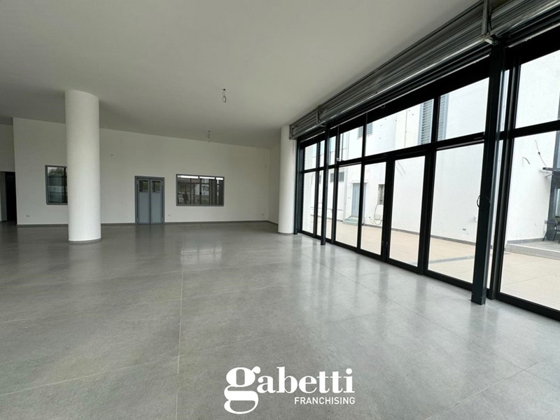 Proponiamo in fitto, locale commerciale di circa 300 mq, attualmente composto da: ampio locale con vetrate fronte strada, che rendono la soluzione luminosa; altri 2 locali adibiti a cucina e studio e 7 bagni.