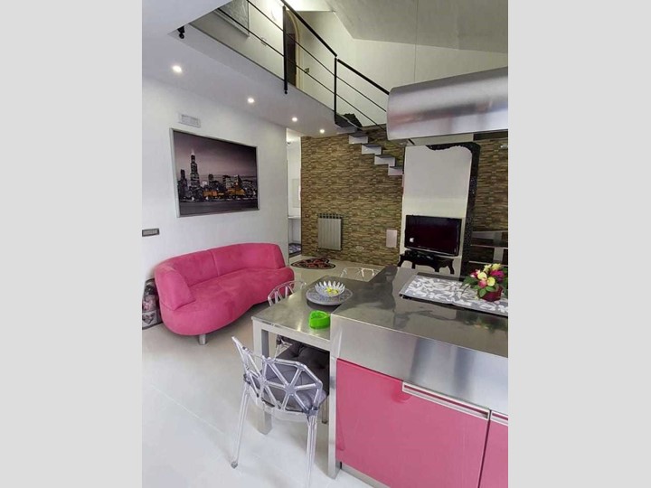 Piano terra (circa 50 mq): accogliente zona living con cucina a vista e salone, una spaziosa camera da letto, un elegante bagno e una comodissima cabina armadio.
